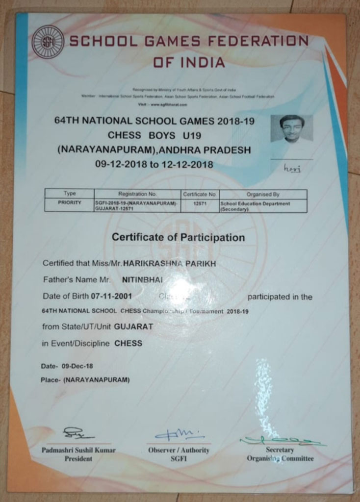 | 114 | ૨૦૨૩-૨૪ | પ્રમાણપત્ર , ચેસ , U-14 | |